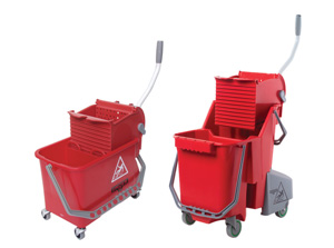 The Restroom Combo System comes complete with a bucket and side press in an easily identifiable red. • It features a dual-compartment bucket to separate your clean and dirty water. • Empty the bucket using a rear-mounted dump spout or the quick-release drain spout. • The bucket includes a easy-to-read fill guide for accurate chemical dilution.