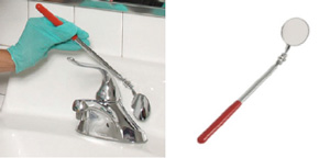 For control of hard-to-see areas. • Telescopic, 29-46cm. • 5cm mirror diameter. • Convenient pocket size. • Red vinyl handle. • Optimal for toilet rims and fittings.